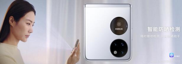 對于愛美的女生來說,華為鏡子可以做她們口袋里的美膚專家。華為鏡子結合P50 Pocket的超光譜影響系統,為用戶可帶來紫外線強度檢測,防曬檢測,以及AI測膚等功能,白天戶外可根據天氣狀況提醒用戶涂抹防曬、夜晚卸妝可檢測防曬霜是否清洗完全,并可為用戶提供通個人膚質分析及個性化護理建議。