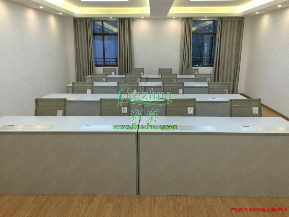 器從會議桌下面升到桌面、當不使用顯示器時,升降機自動下降,顯示器隱藏在會議桌內,起到防塵,防盜,保持桌面平整